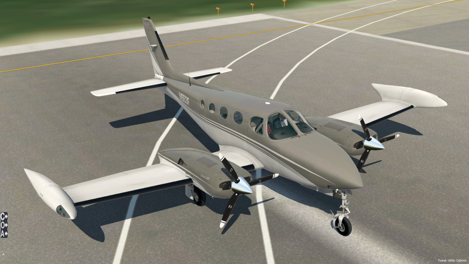 - sechssitziges, zweimotoriges Propellerflugzeug mit Druckkabine