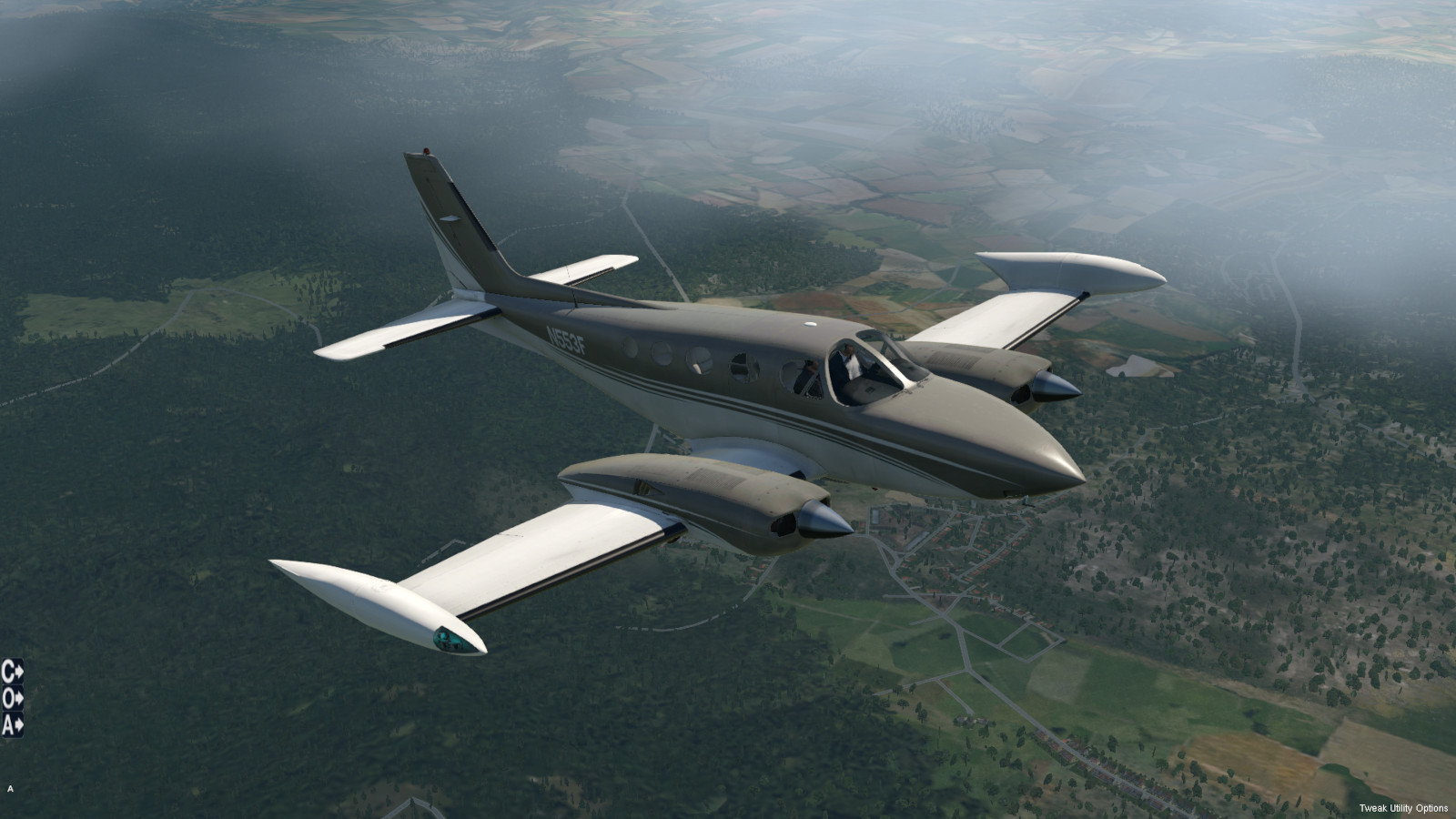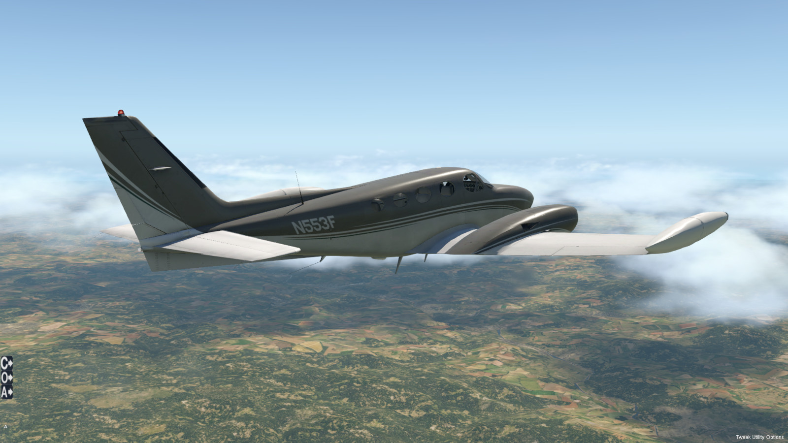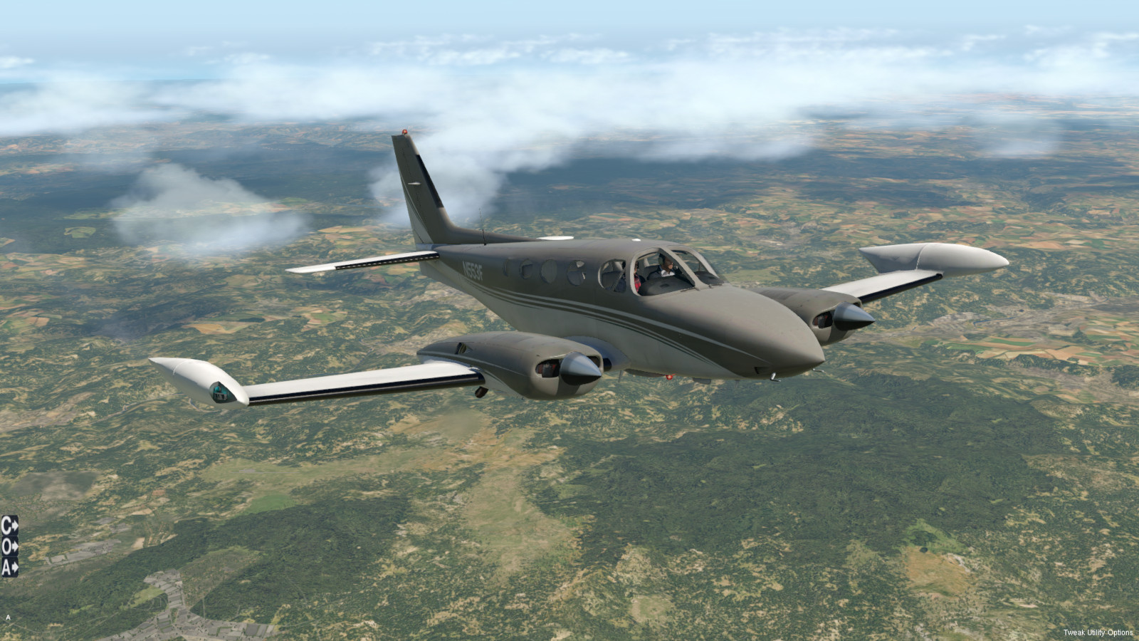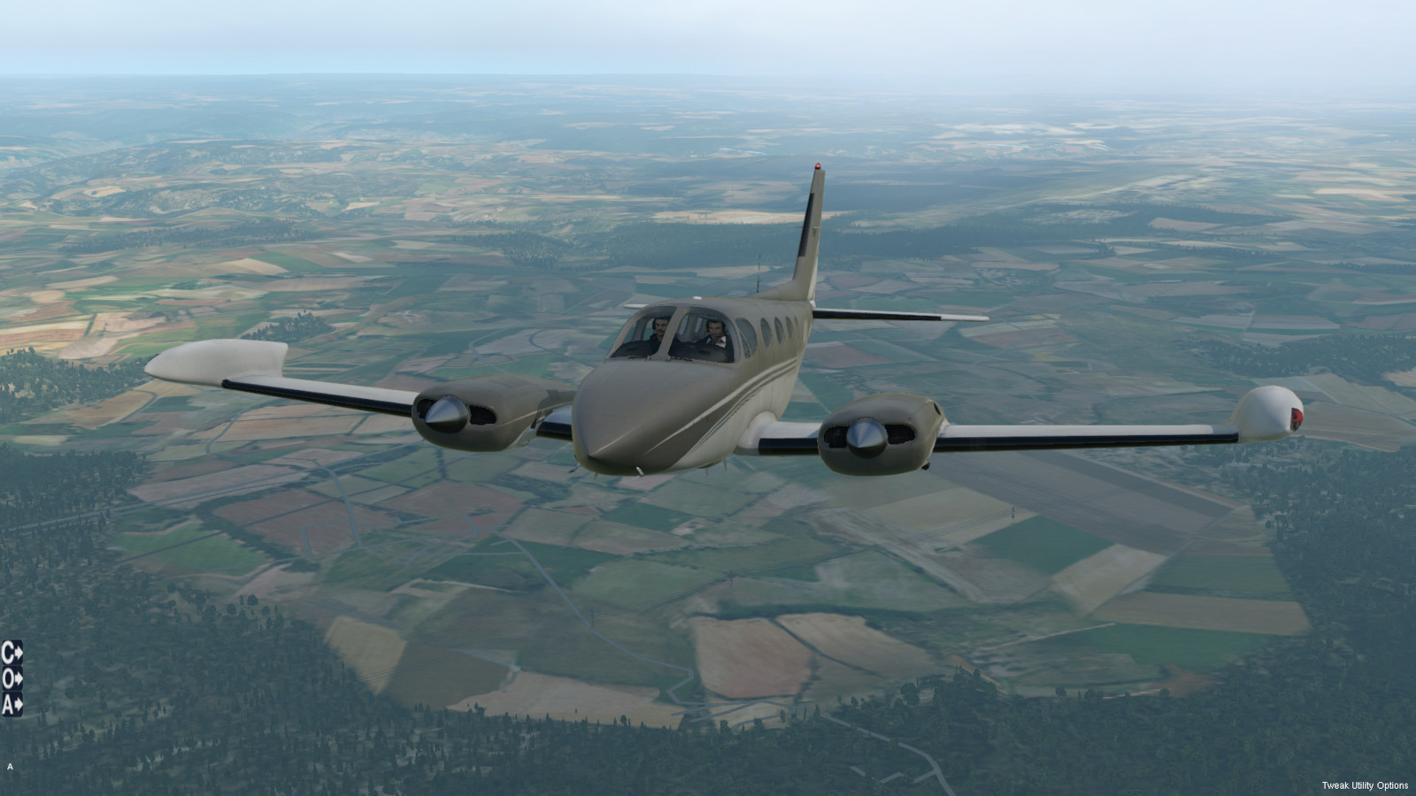 - sechssitziges, zweimotoriges Propellerflugzeug mit Druckkabine